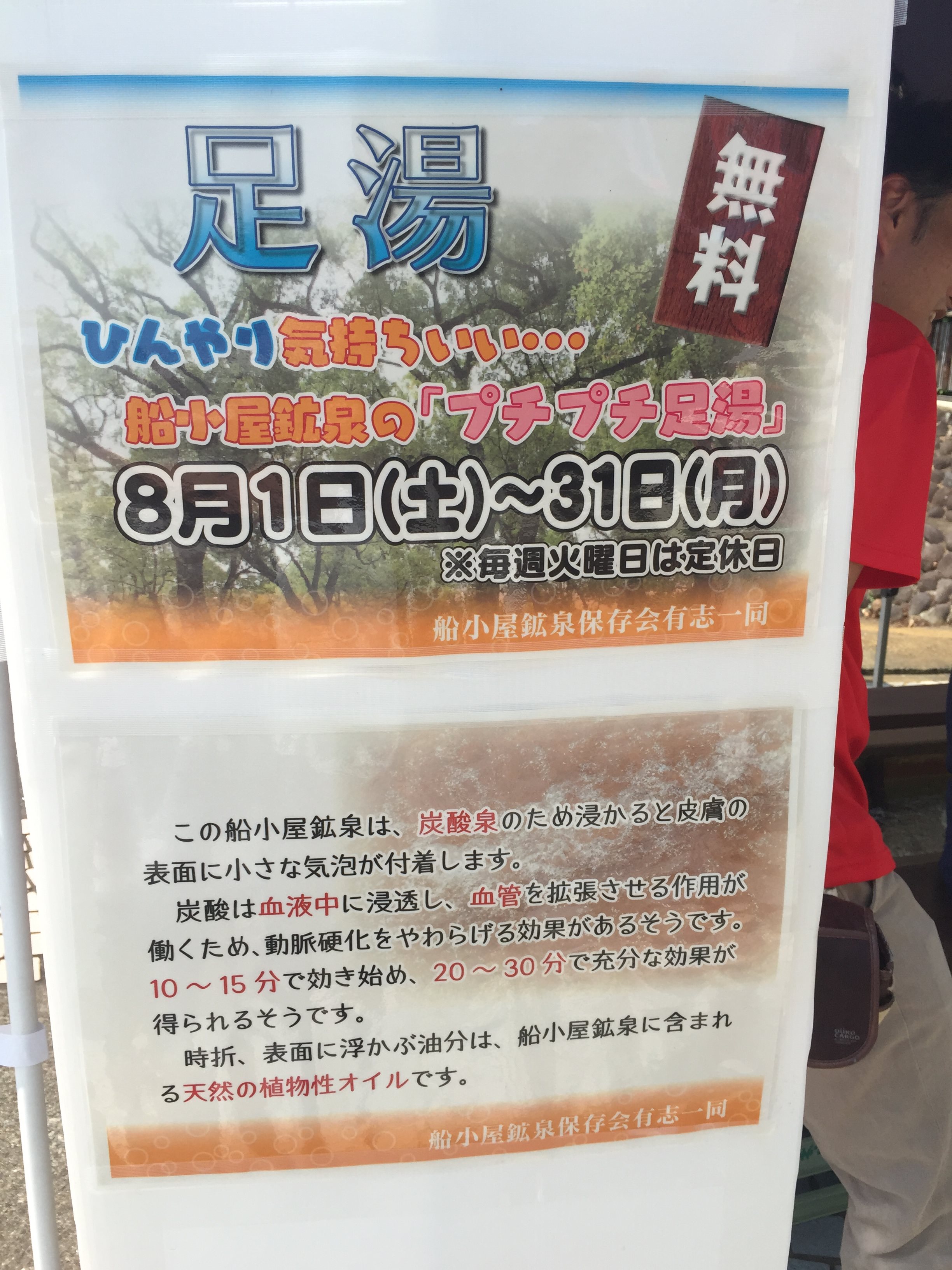 炭酸泉で有名な「船小屋鉱泉場」、「長田鉱泉場」、川の駅船小屋恋ぼたる温泉館」、この3カ所の足湯を体験し周遊するスタンプラリーをあつめると、川の駅船小屋恋ぼたる温泉館の入浴料が半額になります。