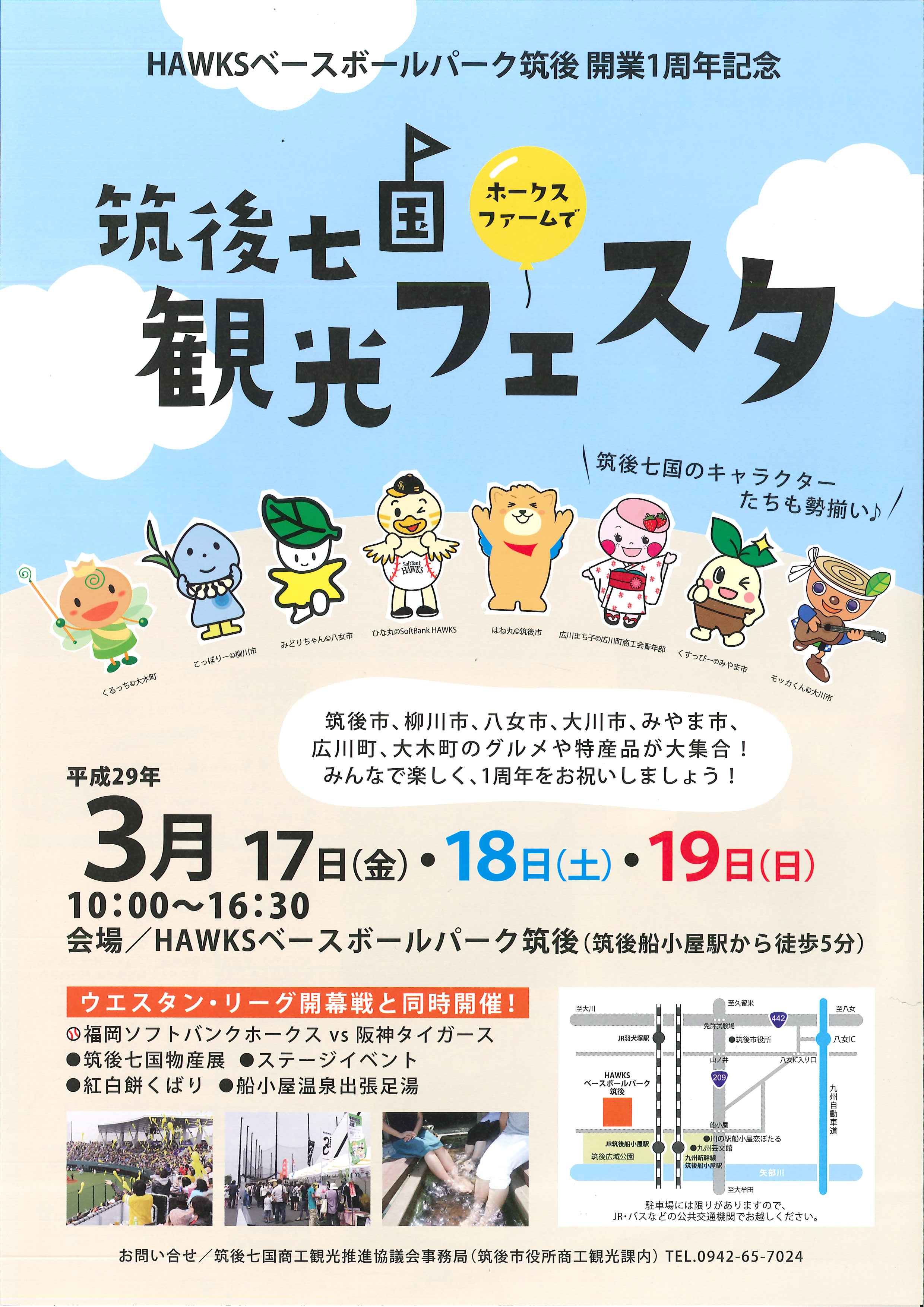 「HAWKSベースボールパーク筑後」の開業1周年を記念して、3月17日(金)から19日(日)までの3日間「筑後七国観光フェスタ」を開催されます。イベントでは、筑後七国のグルメを味わえるほか、筑後七国の地元出演者によるステージイベントが開催されます。